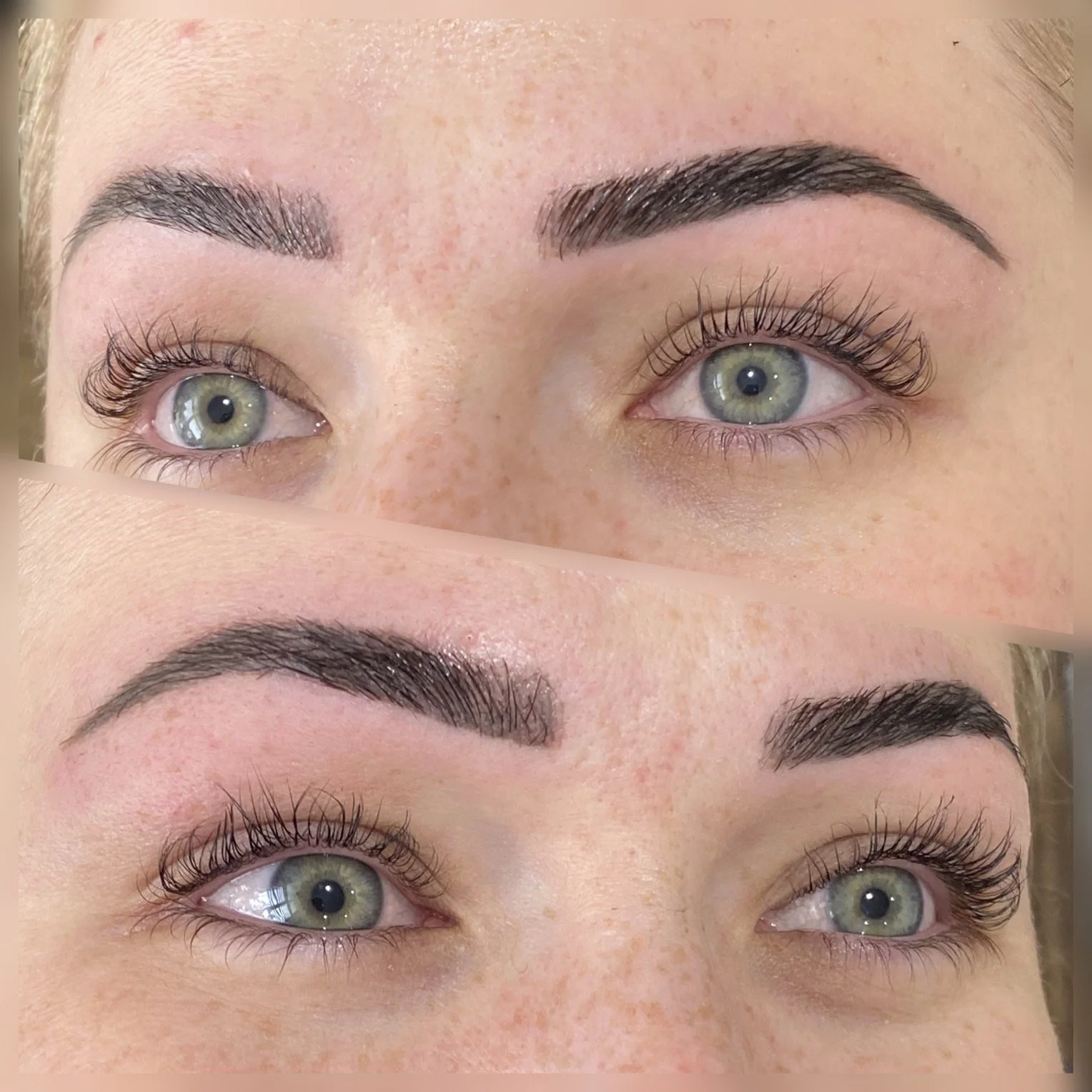 Brow lamination sets your eyebrows into a sleek, defined shape to give a fuller, fluffier appearance. It can help to make your eyebrows look thicker, and included is a tint and full reshape in the brow lamination service. The results last up to 6-8 weeks, and you can have a wax or tint and wax during that time to maintain the shape, without affecting the lamination if you need to.
